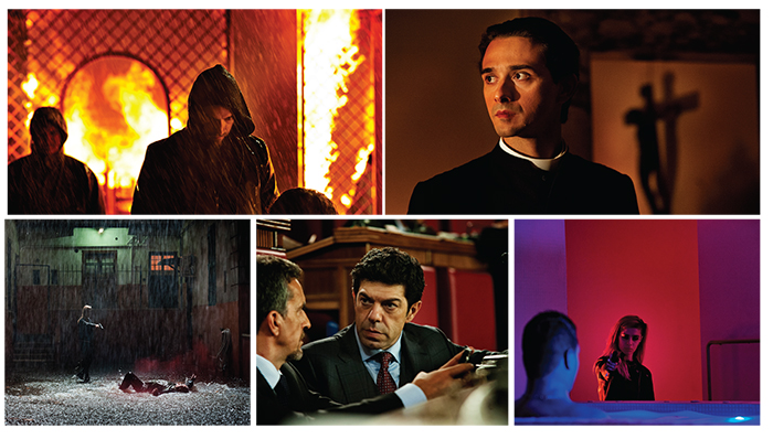 “Suburra” thrives on the interactions of nefarious characters, superbly played by the ensemble cast. The direction is tightly presented to highlight creative action and violent sequences. Lighting and styling conveys an ancient city in a dystopian aura of neon colors.