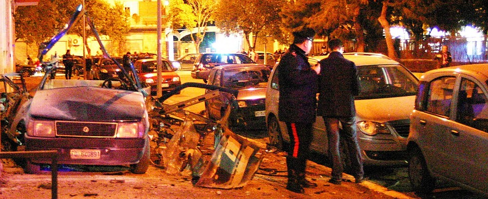 Editor’s Note: A photograph taken by the Carabinieri in the dawn raid of Leonardo Gesualdo’s hideout in Foggia, the map shows the location of Foggia, a center of activity for Italy's newest mafia, the next two photographs highlight the use of car bombs by Società Foggiana, and the police arrest Rocco Moretti, a leader of the Moretti-Pellegrino-Lanza clan of the Società Foggiana.