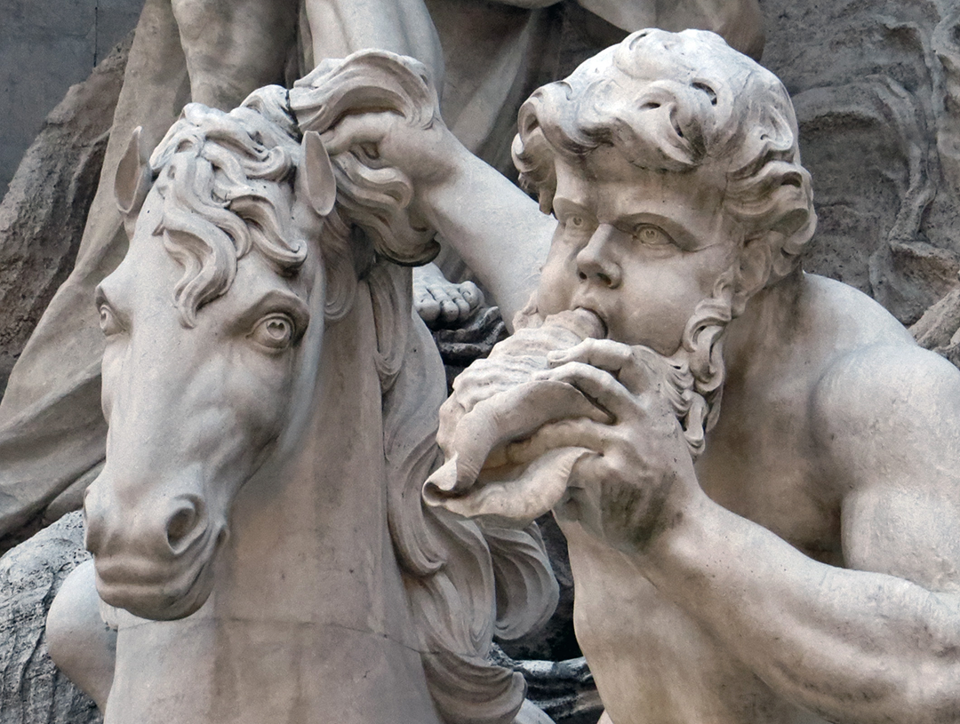Triton grappling with a sea horse—one of many sculpted renderings in the Trevi Fountain
